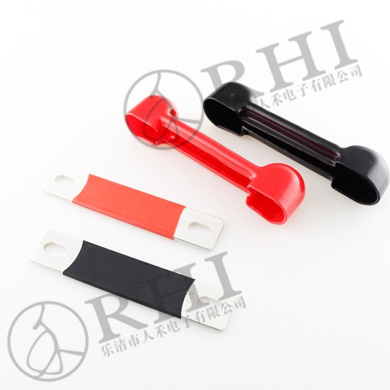 電池用銅排連接以及連體保護(hù)套,T2紫銅材質(zhì),8絲鍍錫,軟塑料連接保護(hù)套,UL94V-0阻燃材質(zhì)。